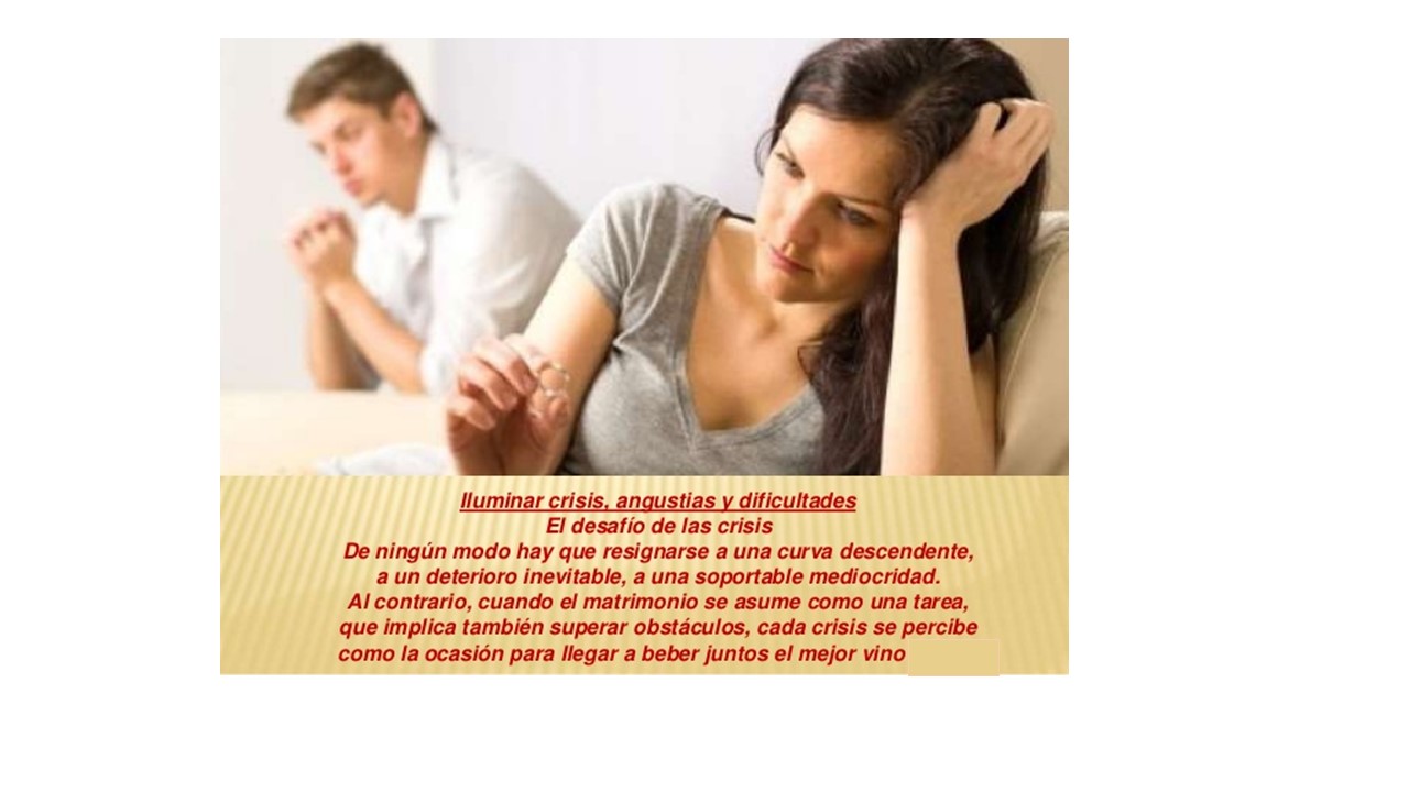 Esta oración va por esos matrimonios en donde no hay verdadero compromiso, en donde hay una falsa libertad que perjudica el alma y crea distancias.